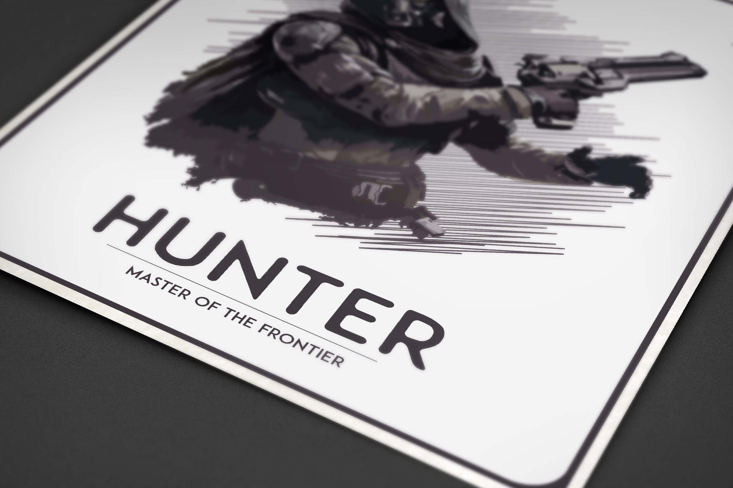 A Destiny Hunter Poster featuring the famous gunslinger... Hunter. This detailed, unique Destiny poster allows you to choose your class and head into battle! Master the short and medium-range battles with your Golden Gun and lead the charge, today!